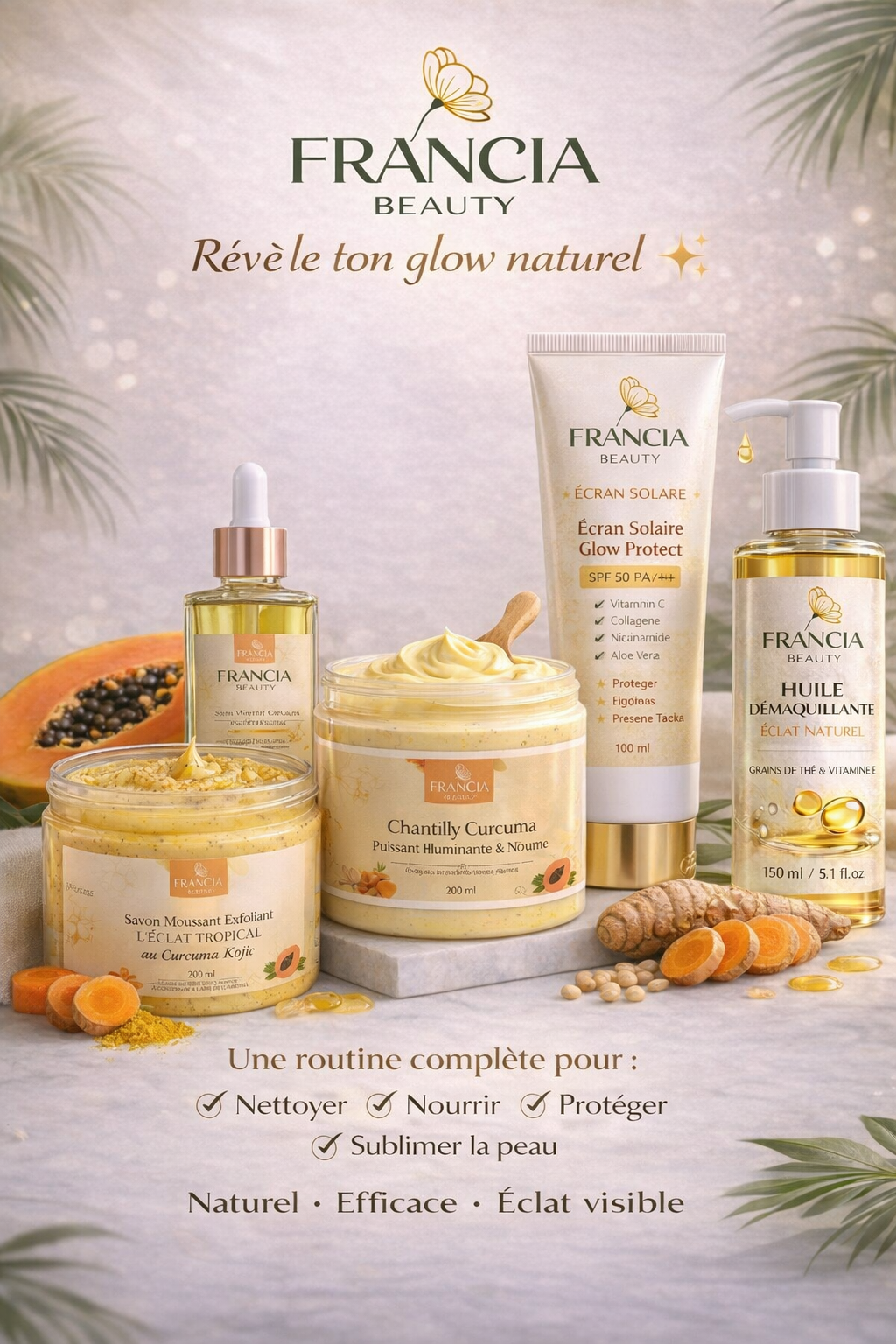 Francia — Fondatrice de La Française Fashion & créatrice de FRANCIA BEAUTY , une marque née d’une difficulté personnelle avec ma peau, que j’ai transformée en mission : aider les femmes à retrouver leur glow naturel grâce à des soins inspirés du naturel.